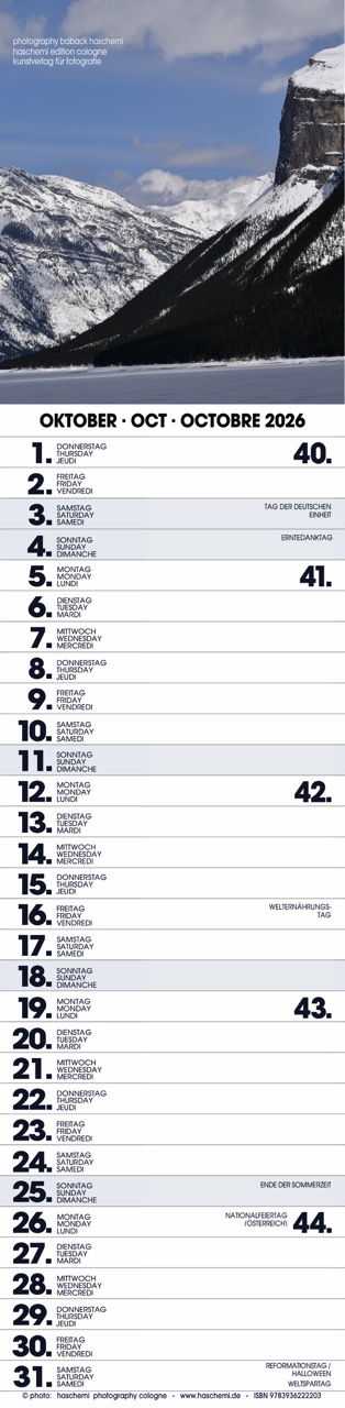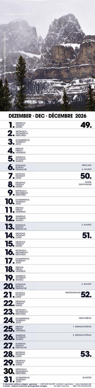 Außergewöhnliche Bildeindrucke des Kalenders sowie dem praktischen Kalendarium ist das Markenzeichen dieser Reihe.