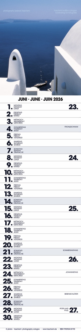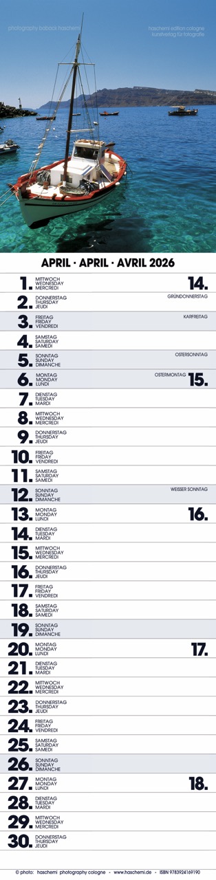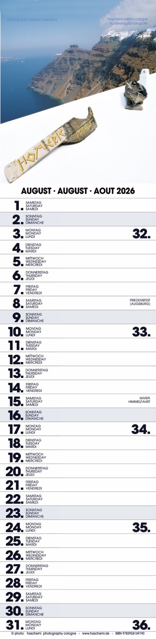 Fotografie Baback Haschemi, 13 Farbreproduktionen, internationales Kalendarium, Wire-O-Bindung, Format 10 x 42 cm