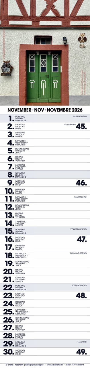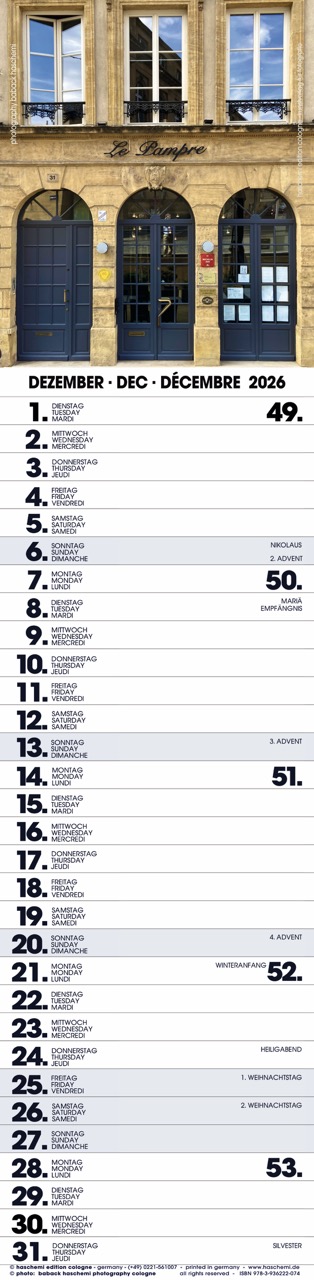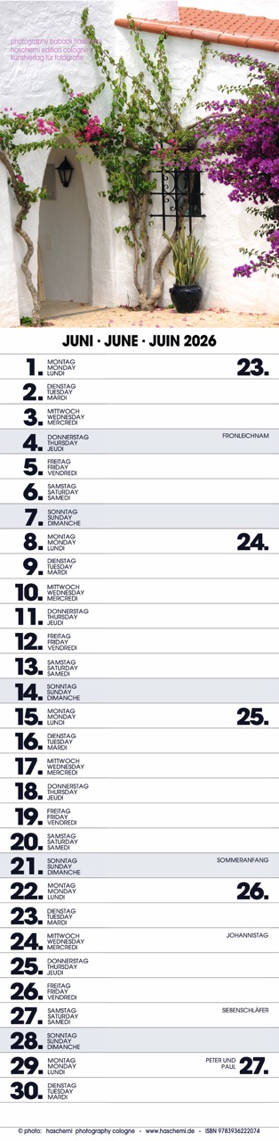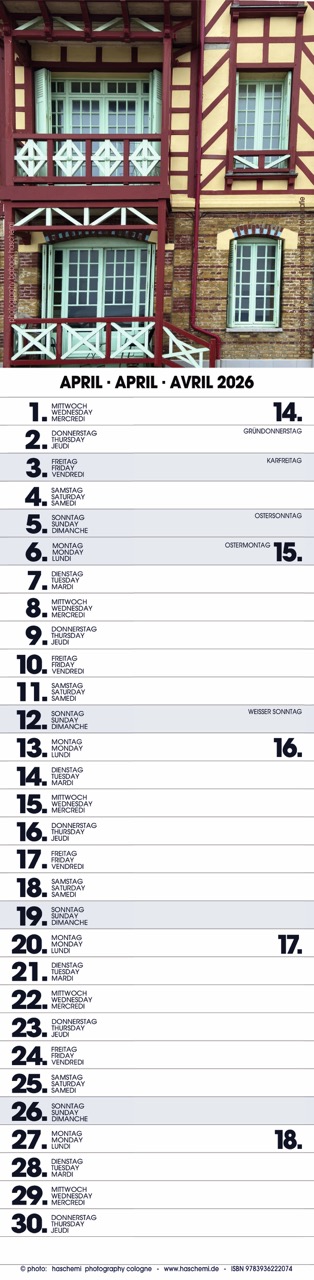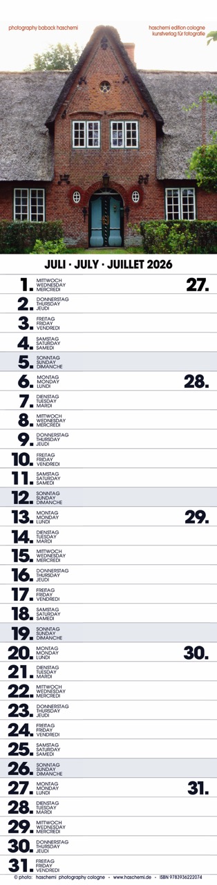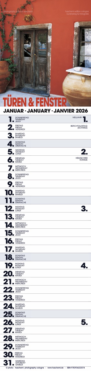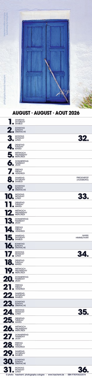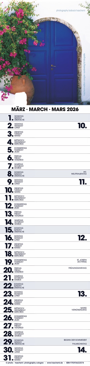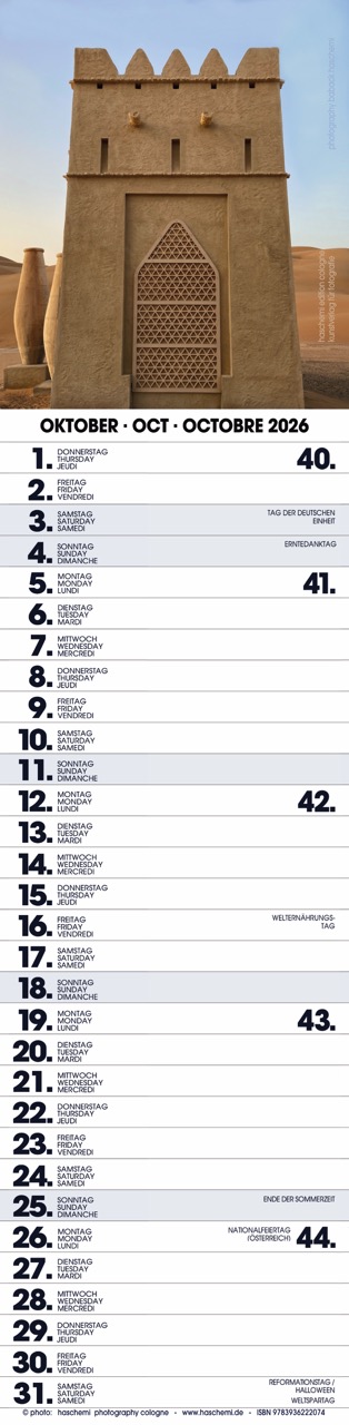 Fotografie Baback Haschemi, 13 Farbreproduktionen, internationales Kalendarium, Wire-O-Bindung, Format 10 x 42 cm