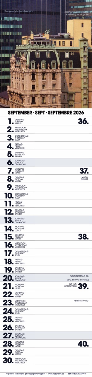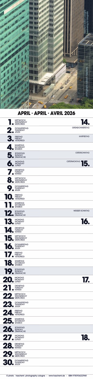 Außergewöhnliche Bildeindrucke des Kalenders sowie dem praktischen Kalendarium ist das Markenzeichen dieser Reihe.