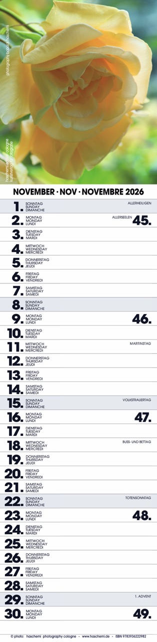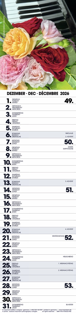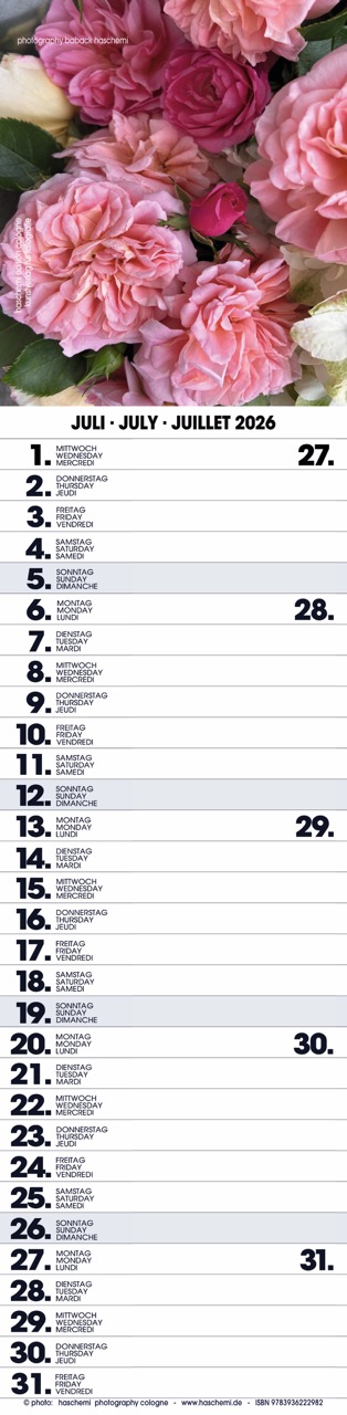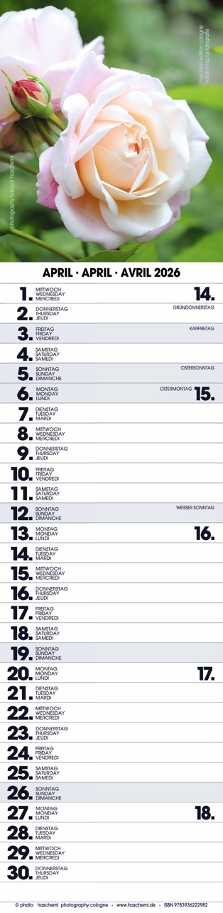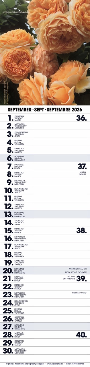 Fotografie Baback Haschemi, 13 Farbreproduktionen, internationales Kalendarium, Wire-O-Bindung, Format 10 x 42 cm